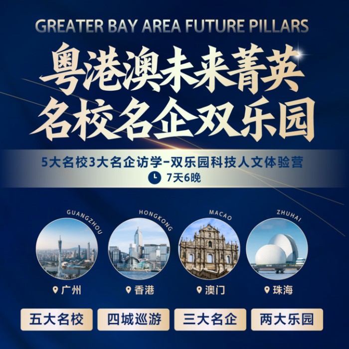 【暑假 | 香港澳门】粤港澳大湾区 | 五大名校菁英访学+三大名企航空科技体验+双乐园迪士尼长隆畅游研学7日营(初高中)